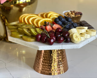 Octagon Shaped Marble Cake Platter - Rose Gold Base - Free US Shipping!